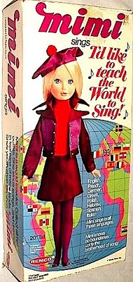 I wasn’t much of a doll person, but Mimi was awesome. She had a record player in her back, and you could buy little records that played “I’d like to teach the world to sing” in different languages. The records also came with books that had the lyrics translated *and* transliterated for English speakers.