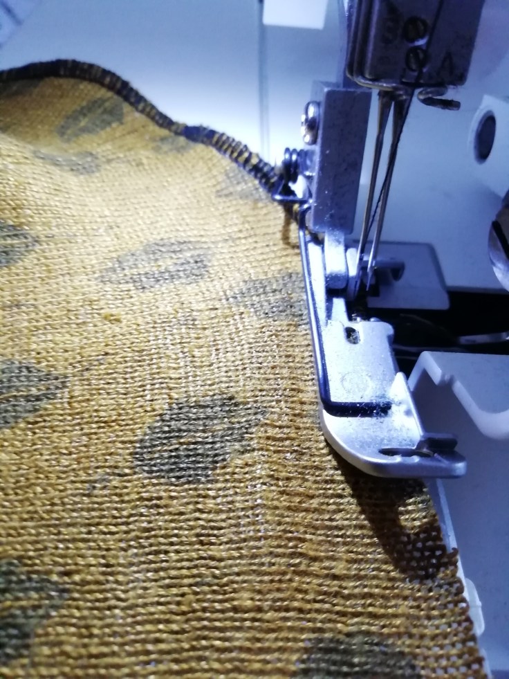 I thought first to use a narrow rolled hem. It didn’t work. Then I tried a regular 3-thread overlock. Better, but not perfect. A wide three-thread rolled hem turned out to be just the ticket.