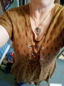 (There’s also the matter of the sleeves, which normally would not be my favorite. But because of the extra room, they fall to the middle of my bicep, which is actually just right.)