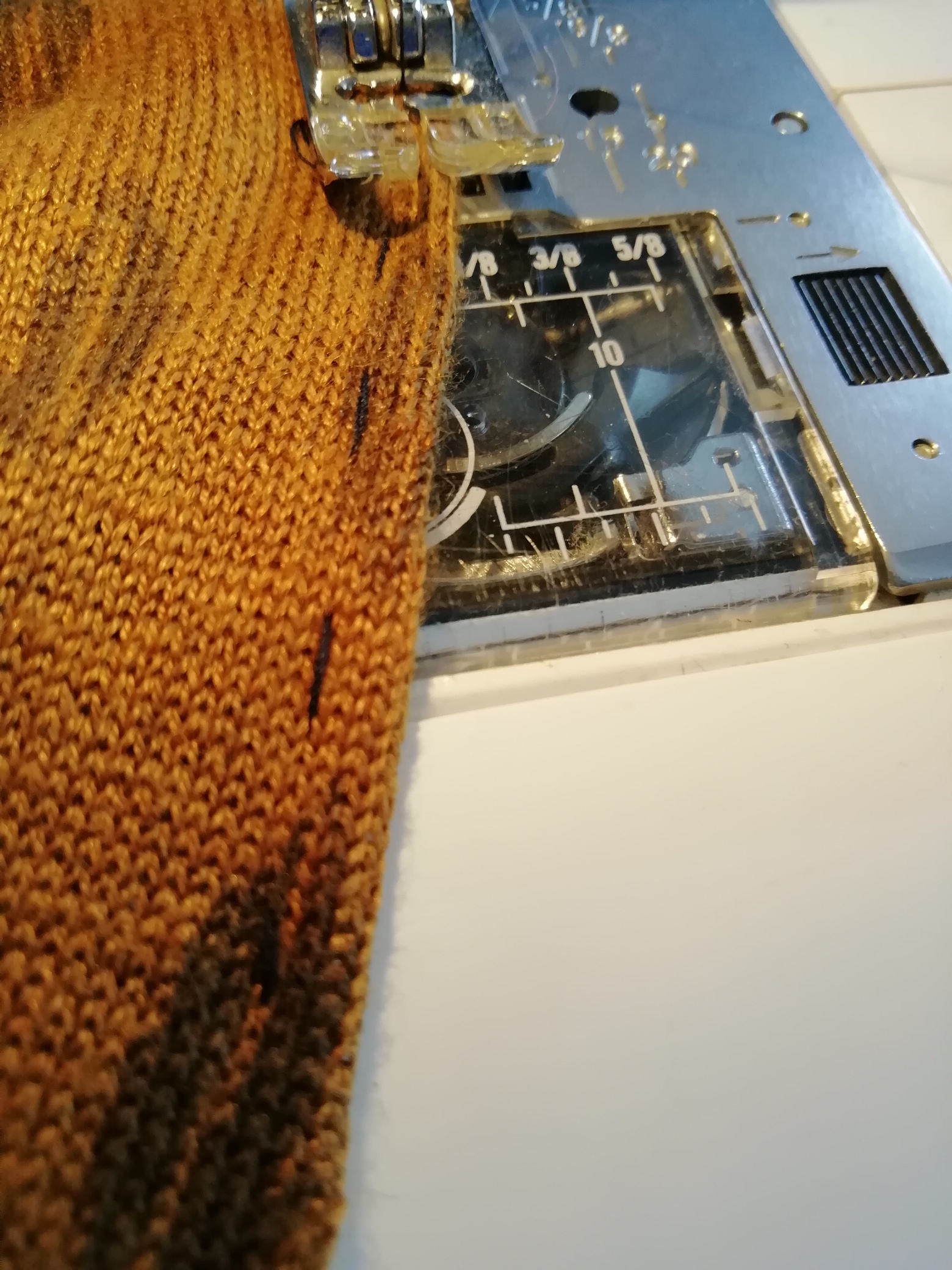 However! This rescue also involves a teensy bit of topstitching, so I’m using my regular sewing machine, too. I use a Necchi 6160, which is a bit of a white elephant, but it’s served me well for many years.