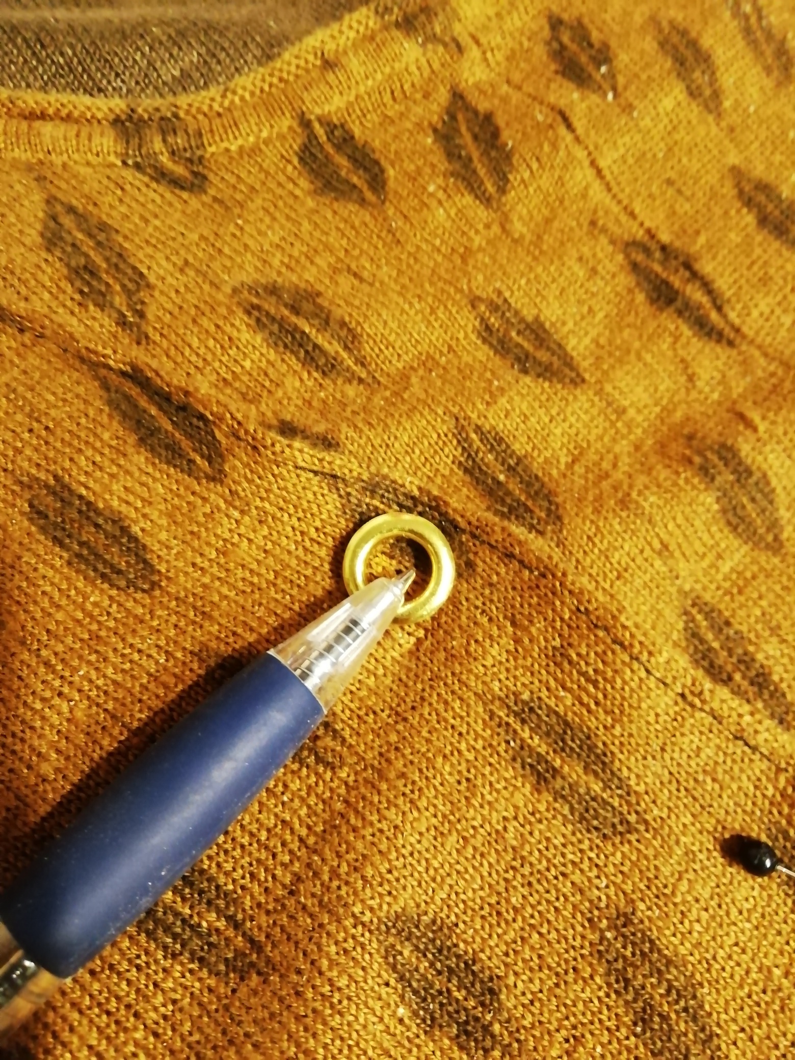 I marked the places for my grommets. White knuckle times, as this is a permanent change that can ruin the garment. Have to tell myself it wasn’t getting a lot of use anyway.